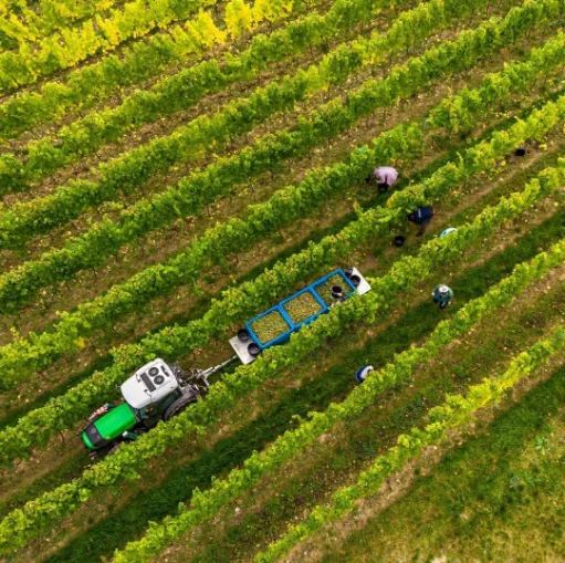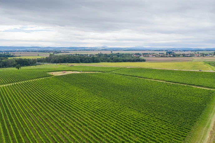 Zaledwie pięćset metrów od winiarni, na południowo-zachodnim stoku zbudowanym ze skał granitowych i ich zwietrzeliny, znajduje się nasza 10,5-hektarowa winnica, położona na wysokości 230 m n.p.m. Wierzymy, że naturalnie uprawiane, zdrowe i dojrzałe winogrona stanowią fundament wyjątkowego wina. Dlatego – obok Rieslinga – posadziliśmy kilka odpornych na choroby odmian PIWI. Od 2023 roku przechodzimy na uprawę ekologiczną, a te odmiany doskonale wpisują się w praktyki rolnictwa organicznego, zwłaszcza w obliczu coraz większych wyzwań związanych ze zmianami klimatu.