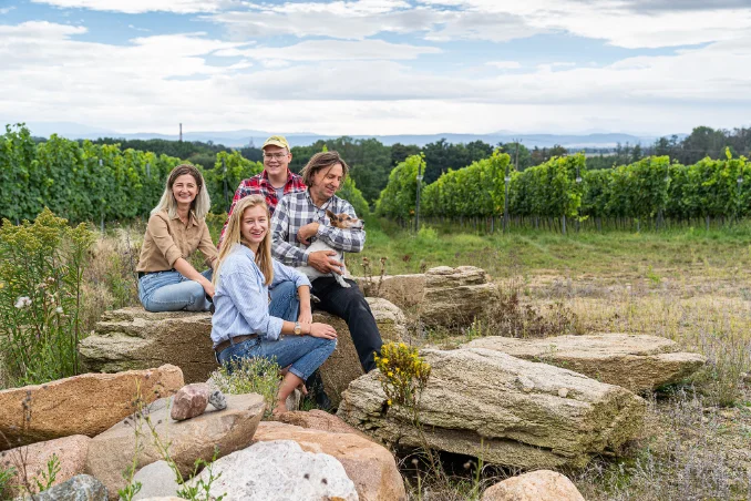 Jarek Mazurek, rolnik z ponad 40-letnim doświadczeniem, założył Winnicę Silesian i z pasją dogląda winnicy oraz winorośli. Jego bracia i siostrzenice nadal prowadzą rodzinną stadninę, dzięki czemu konie wciąż pozostają ważną częścią naszej historii i inspiracją dla wielu etykiet. Esben Madsen, duński zięć Jarka, jest winiarzem i czuwa nad każdym winem od momentu tłoczenia aż po butelkowanie. Sonia, starsza córka, zarządza codziennymi sprawami winnicy, wspiera męża w winiarni oraz nadaje kreatywne nazwy winom i projektuje etykiety. Marysia, młodsza córka, organizuje wydarzenia, promuje winnicę i prowadzi degustacje.