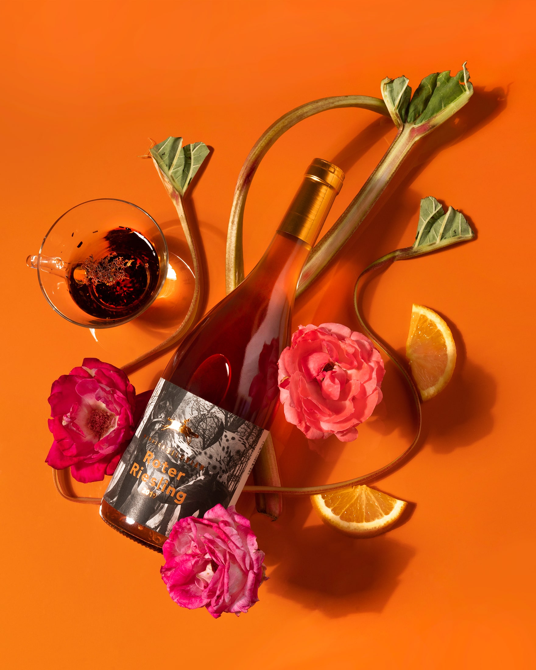 Roter Riesling powstał na podobnych zasadach, czterotygodniowa, dzika fermentacja na skórkach pozwoliła na wydobycie pięknego koloru i ziołowych aromatów, a ponad roczne dojrzewanie uspokoiło żywą kwasowość i zmiękczyło taniny. Oprócz tego skrywa nuty grejpfruta, liczi i mirabelki, a w ustach przywołuje smak skórki pomelo i suszonych owoców.